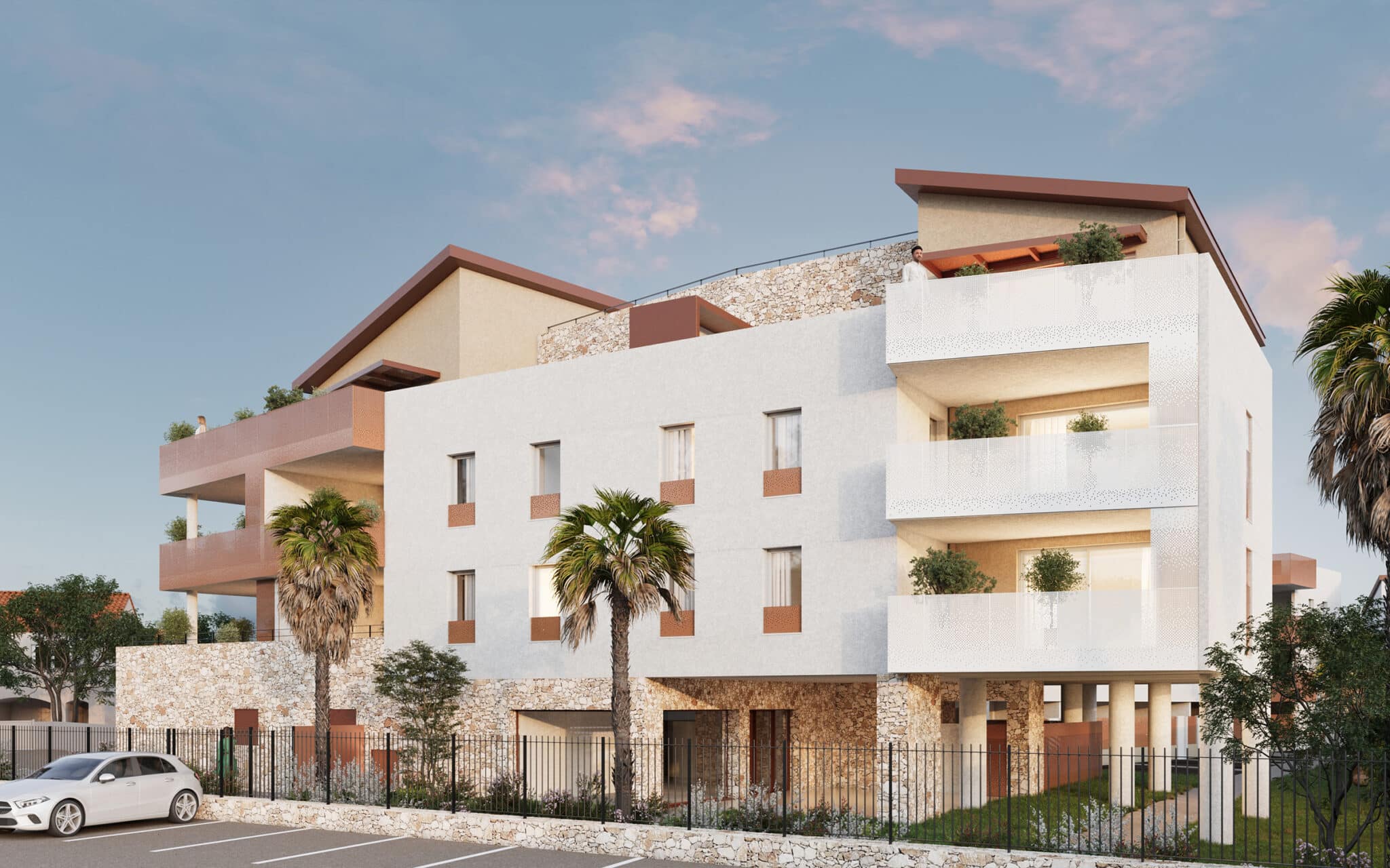 La résidence Domaine Esperanza, du T2 au T4, les appartements sont répartis sur 2 ou 3 étages, avec des surfaces extérieures de 16 m² à 89 m², pensées comme de véritables espaces de vie. L’architecture en attique, alternant toitures terrasses et tuiles, s’intègre harmonieusement dans le cadre résidentiel tout en affirmant son style.