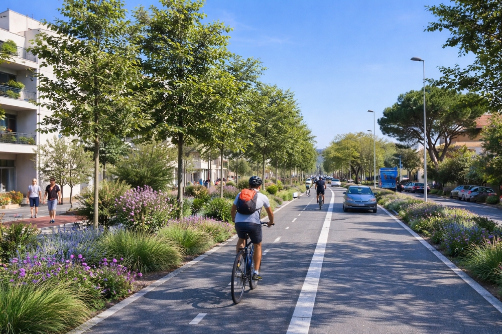 2025 marque un tournant écologique pour Nîmes. Le centre s’équipe en pistes cyclables, bornes de recharge électrique, espaces végétalisés et transports doux. Le réaménagement de l’Esplanade Charles-de-Gaulle, les lignes Tango en bus à haut niveau de service, ou encore les nouveaux mobiliers urbains connectés montrent la volonté de la ville d’entrer pleinement dans l’ère durable.